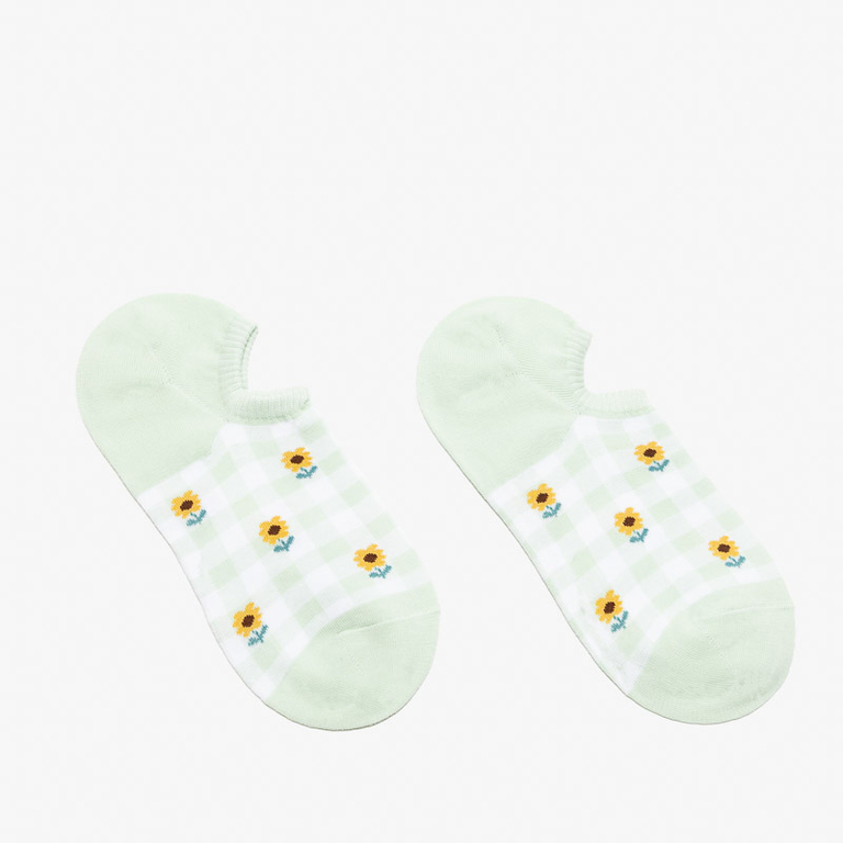 - Жіночі шкарпетки в клітинку. Виконані з бавовняного матеріалу. Додатково модель оздоблена красивим принтом.