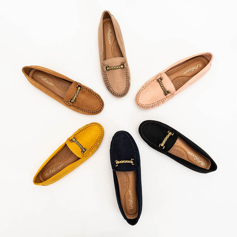 - Класичні жіночі мокасини з металевим декором на носку. Модель виготовлена з екологічної замшевої шкіри. М'яка устілка з подушками з еко-шкіри. Чудовий вибір при створенні повсякденних стилізацій!