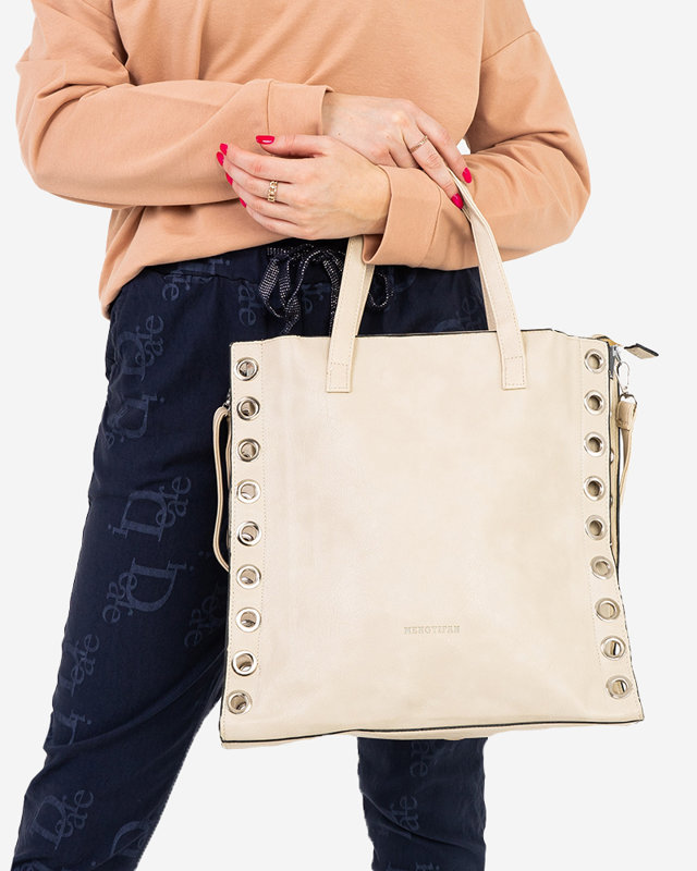- Жіноча сумочка з екошкіри, з люверсами та застібкою-блискавкою. Модель має: - 1 відділення, - 2 відділення - 1 зовнішню кишеню, - 1 внутрішню кишеню на блискавці, - 2 внутрішні накладні кишені - додатковий ремінь. Ідеальна сумка для міста!