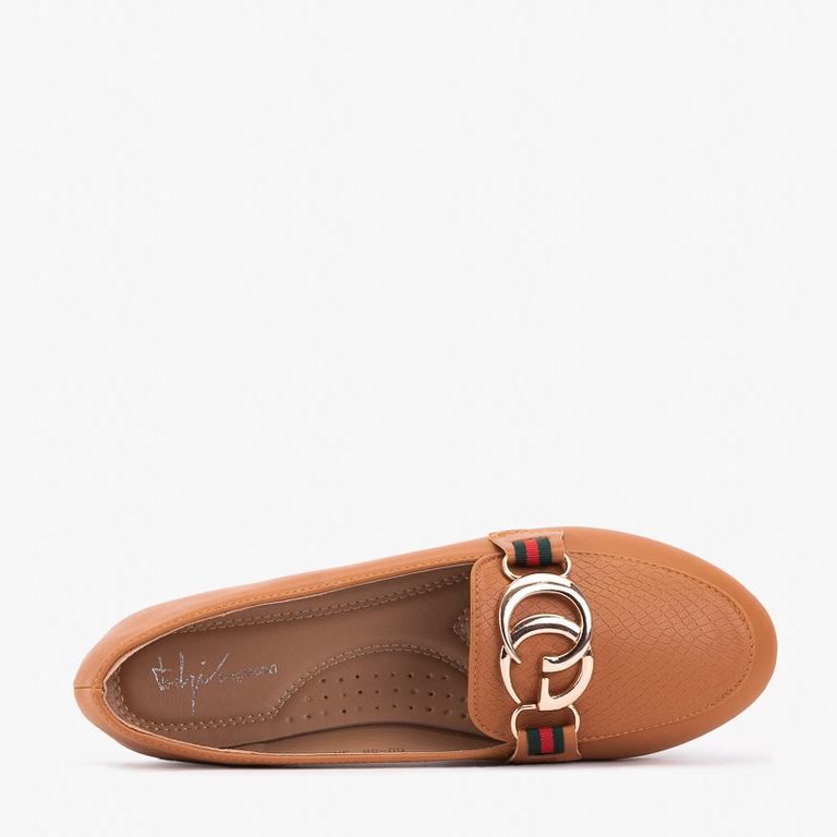 - Елегантні жіночі мокасини із золотим металевим оздобленням на носку. Верх виготовлений з еко-шкіри, м'яка устілка з подушками забезпечить комфорт під час носіння!