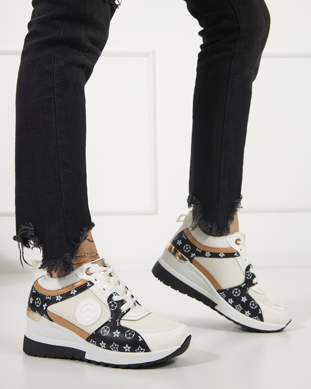 • Стильні жіночі кросівки на закритій танкетці, модель виконана з поєднання екологічної шкіри та тканини. Верх на шнурівці, текстильна устілка та гумова підошва. Модно та елегантно!