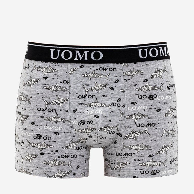 Чоловічі сірі шорти-боксери з принтом- Нижня білизна