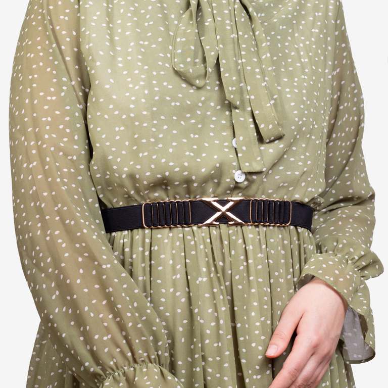 - Унікальний жіночий ремінь з металевим оздобленням. Застібається ззаду на гачок. Модель виготовлена з комбінації еластичної резинки та металу. Ідеально підкреслює будь-який повсякденний образ!