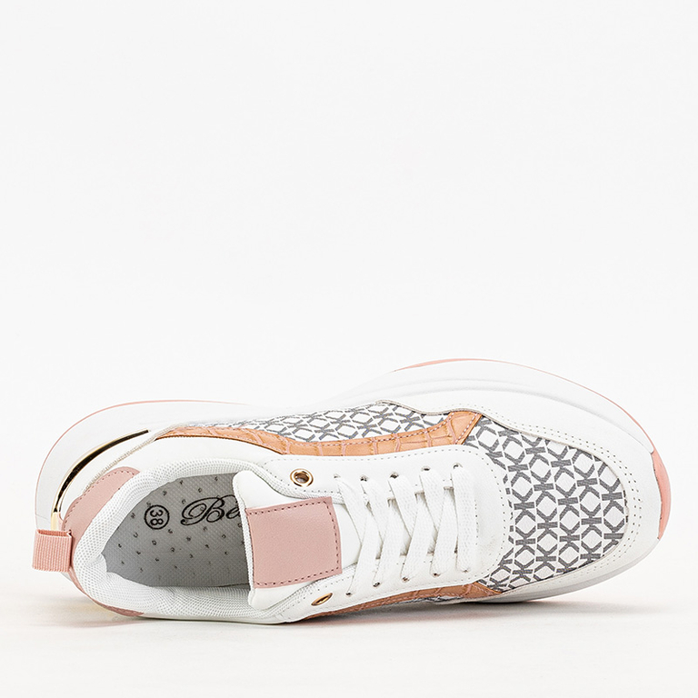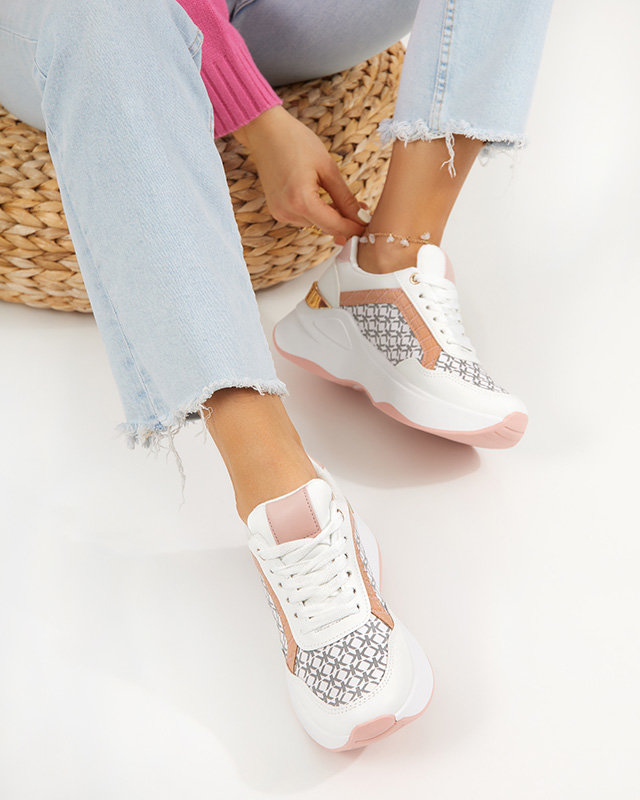 - Дуже стильне жіноче спортивне взуття на масивній підошві. Верх на шнурівці, виготовлений з комбінації екологічної шкіри та тканини, посередині тканинної вставки. Ідеальне взуття на весну!