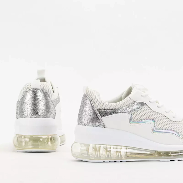 • Стильне жіноче спортивне взуття на танкетці, верх на шнурівці та виготовлений з поєднання сітки та матової екологічної шкіри. Внутрішня тканинна вставка. Примітка: виріб має пошкоджений матеріал.