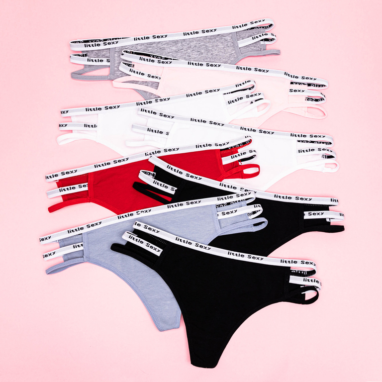 - Однотонні жіночі трусики стрінги бавовняні. Модель має смужки з боків, прикрашені написами. Ідеально підходить для щоденного використання! ПРИМІТКА: Точність вимірювання (+/-) 1 см.