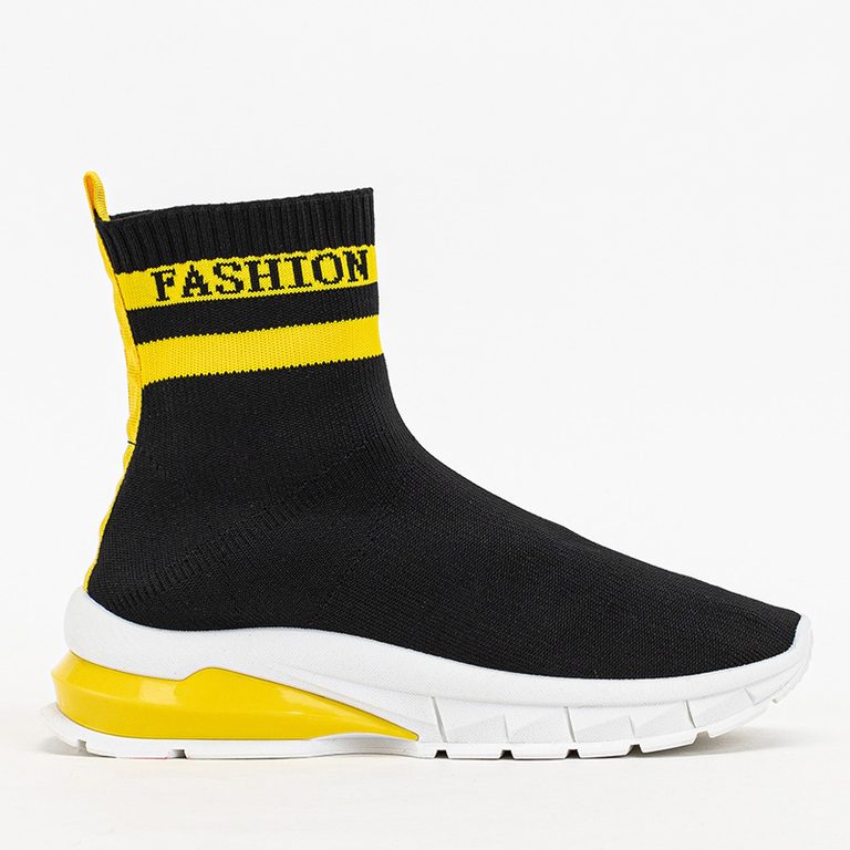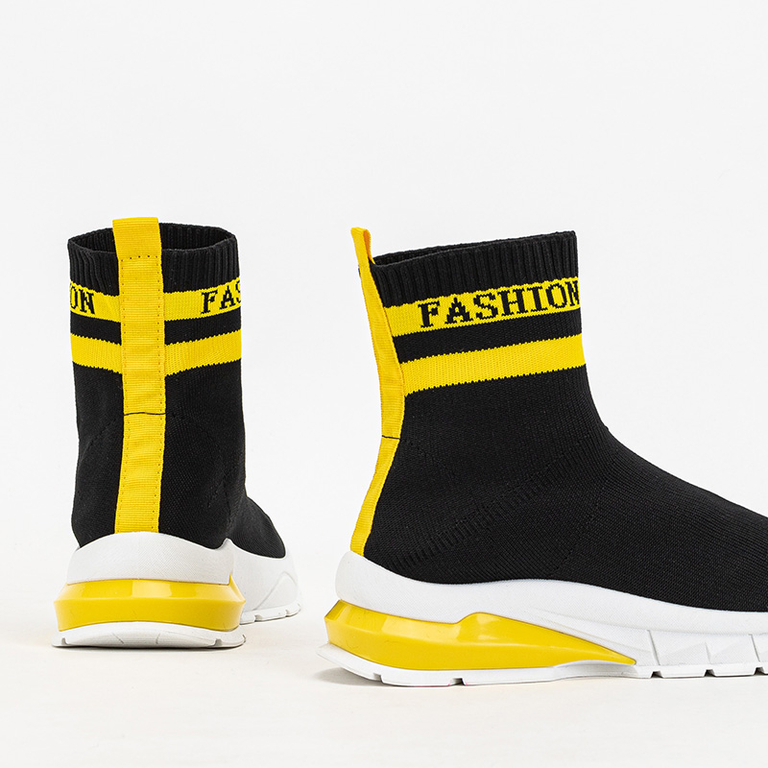 Чорні жіночі високі кросівки з жовтими вставками Jammy