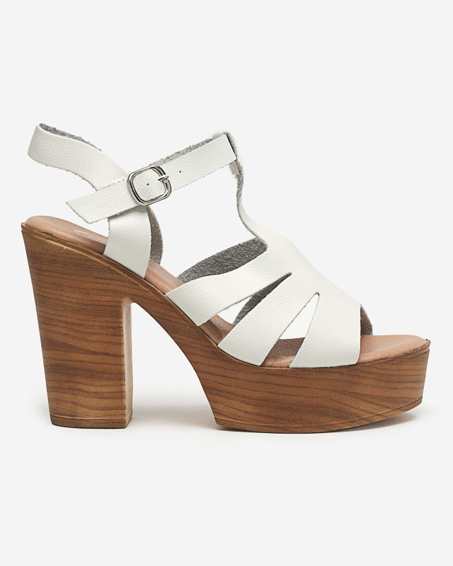 - Стильні жіночі босоніжки з каблуком на платформі, виготовлені з екологічної шкіри. Модель застібається на пряжку зовні.