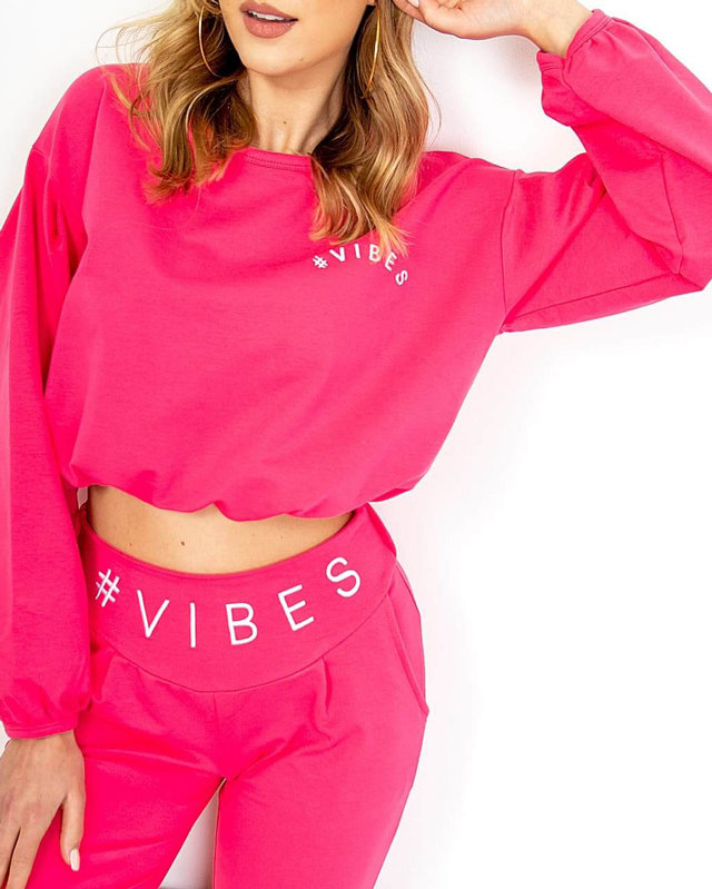 Спортивний жіночий спортивний костюм кольору фуксія зі світшотом кроп-топ - Одяг