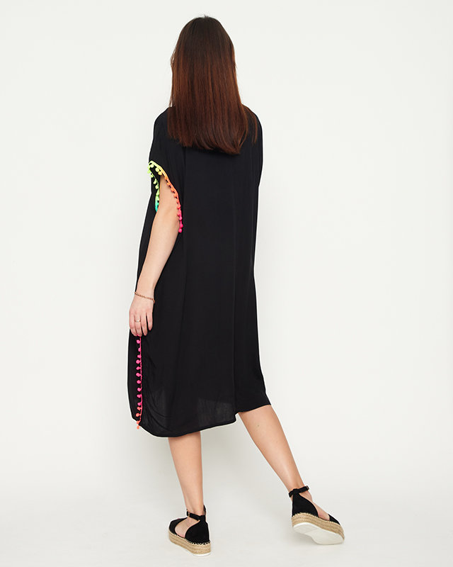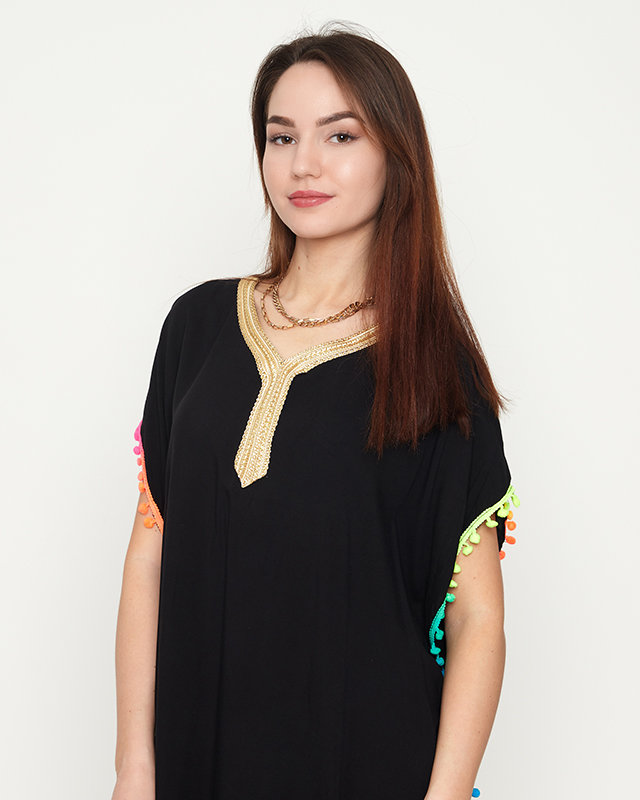 Жіноча чорна літня пляжна туніка з помпонами - Одяг