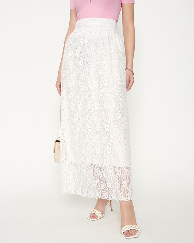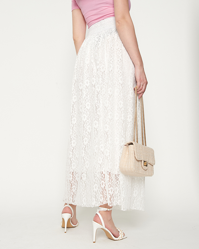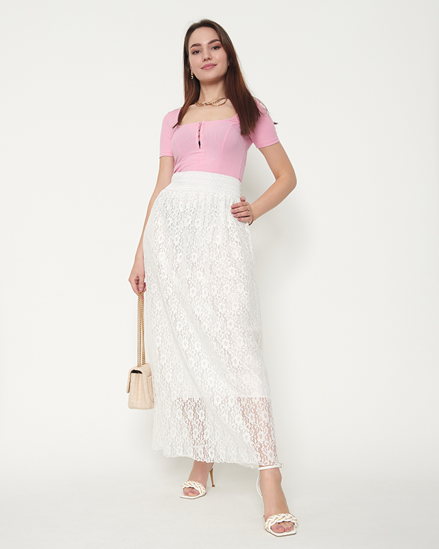 • Стильна жіноча спідниця довжини міді. Виконана з приємного мереживного матеріалу. Еластична резинка в поясі. Модель з підкладкою, доступна в різних кольорах!
