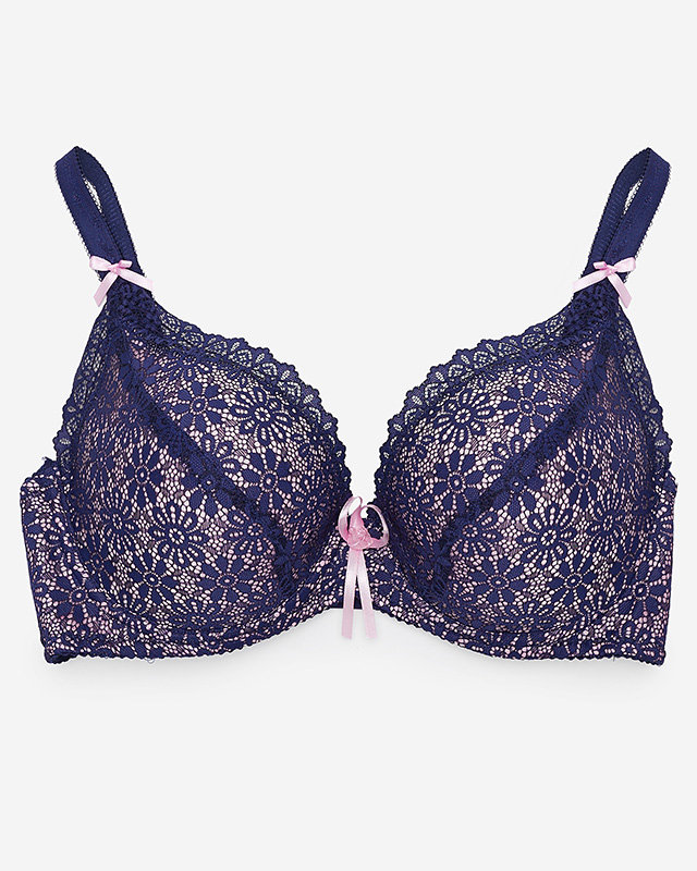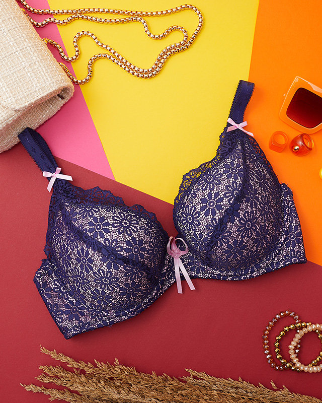 Синьо-рожевий жіночий мереживний бюстгальтер