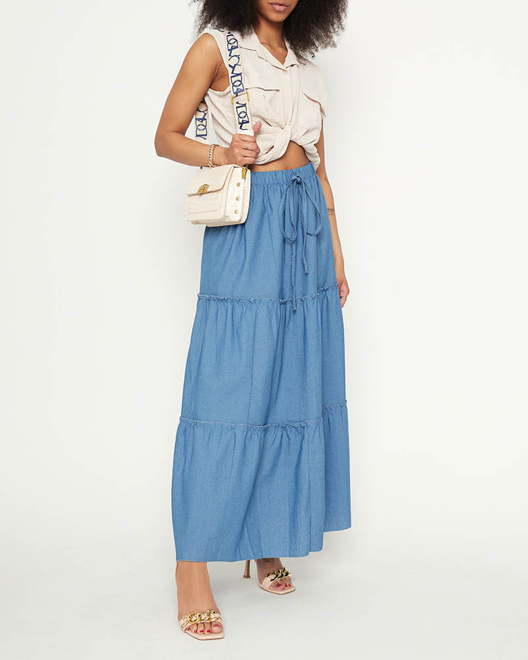 • Легка жіноча спідниця довжини максі з приємної бавовни. Еластична резинка і зав'язка на талії. Чудовий варіант для теплих днів! ПРИМІТКА: Точність вимірювання (+/-) 1 см.
