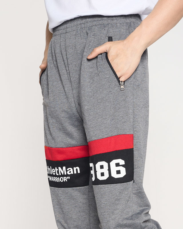 • Дуже зручні чоловічі спортивні штани, виготовлені з матеріалу з високим вмістом бавовни. Модель має дві кишені на блискавці, еластичний пояс і зав’язані шнурки, спортивні вставки в передній частині стегон. ПРИМІТКА: Точність вимірювання (+/-) 1 см.