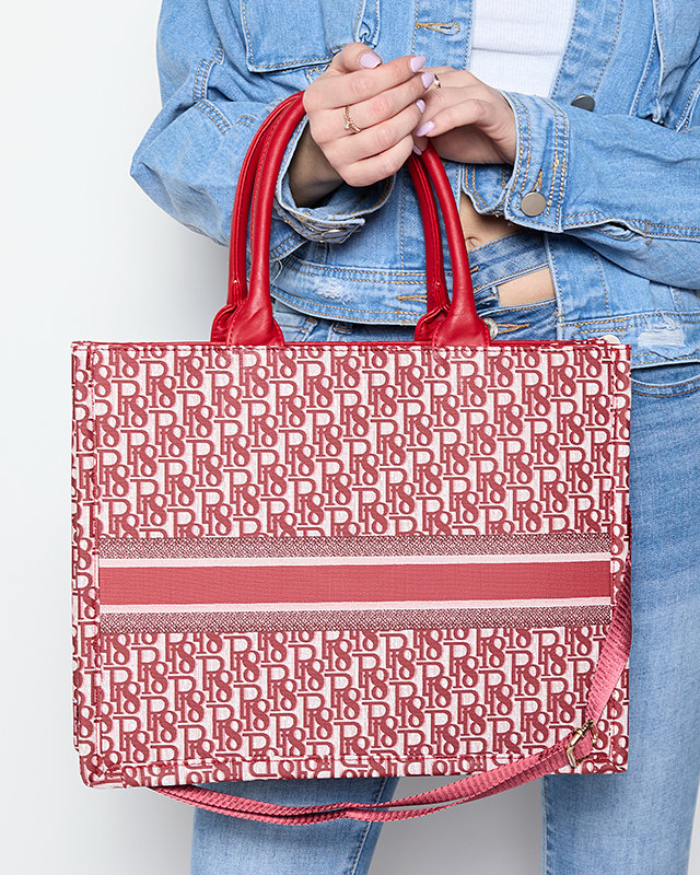 Жіноча червона сумка шопер з принтом - Аксесуари