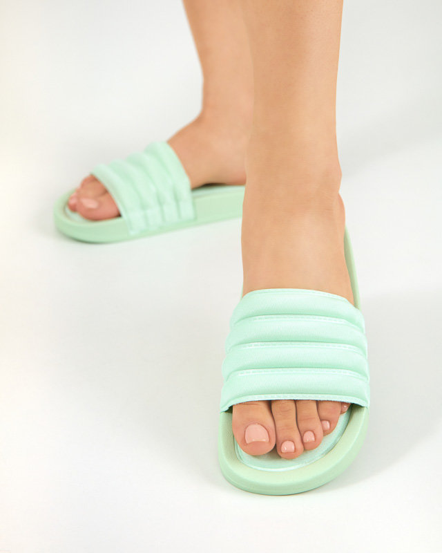 - Суперстильні жіночі шльопанці в смужку, на плоскій підошві. Верх і устілка виготовлені з тканини, підошва з гуми. Чудовий варіант на щодень.