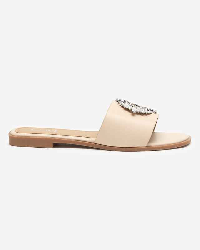 OUTLET Жіночі бежеві тапочки зі сріблястим орнаментом. Hipi - Взуття