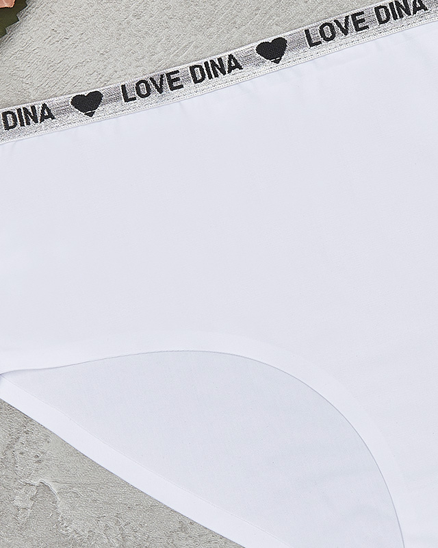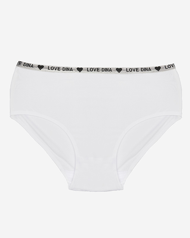 Труси жіночі білі з декоративною смужкою з написами - Нижня білизна