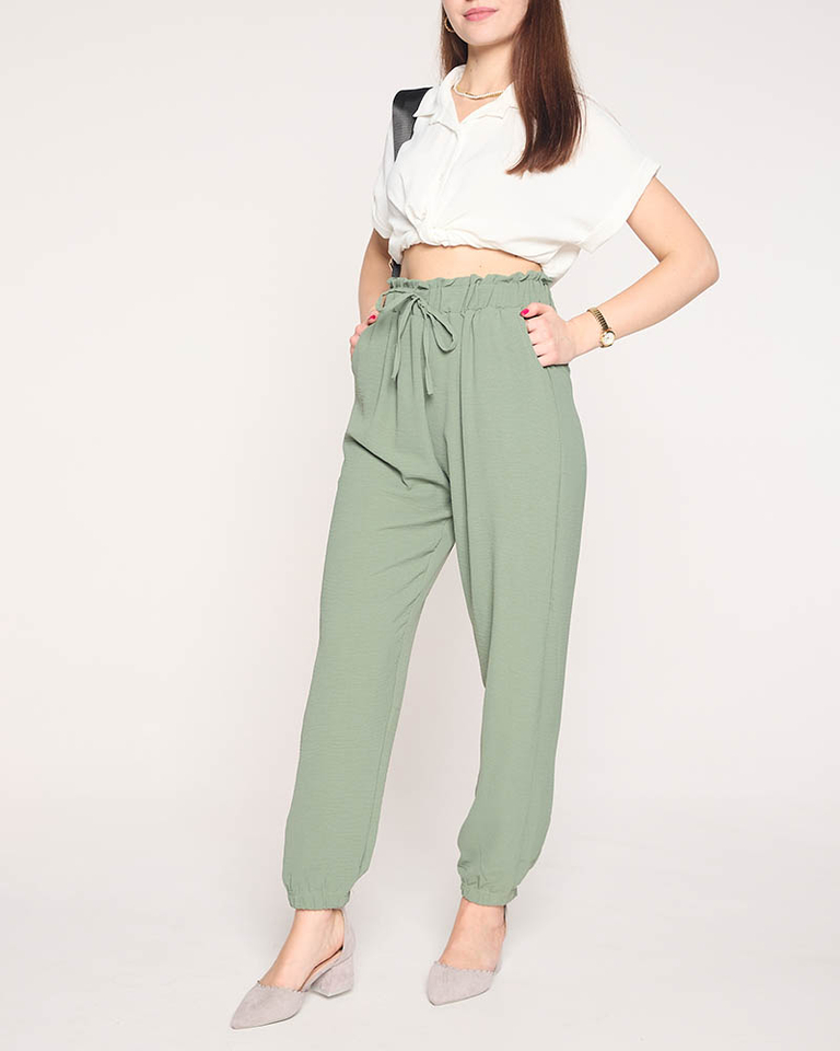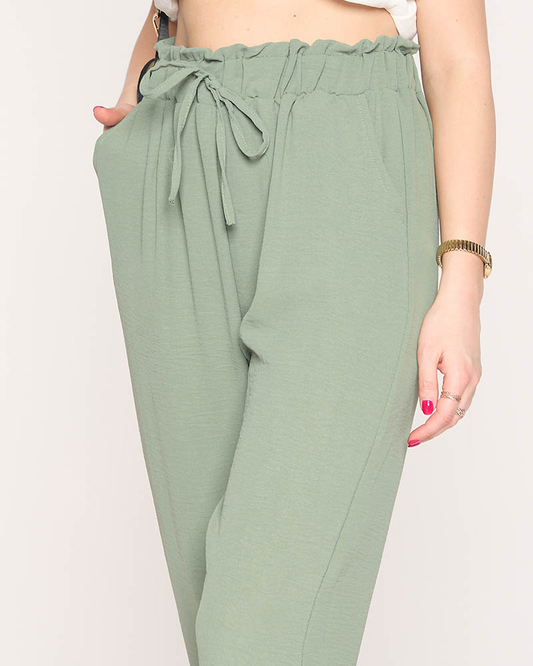 Жіночі тканинні штани зеленого кольору PLUS SIZE - Одяг