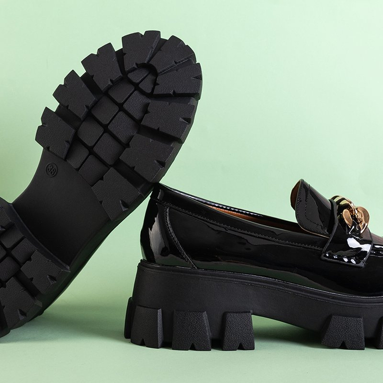 OUTLET Жіночі чорні лаковані сліпони з ланцюжком Guinewra - Взуття