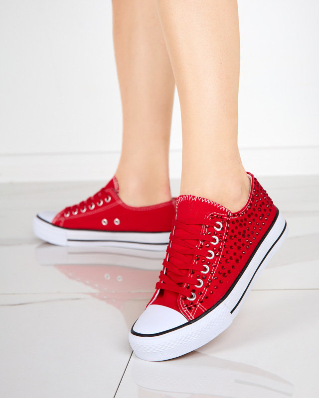 OUTLET Жіночі кросівки з різнокольоровими цирконами червоного кольору Amanda - Взуття