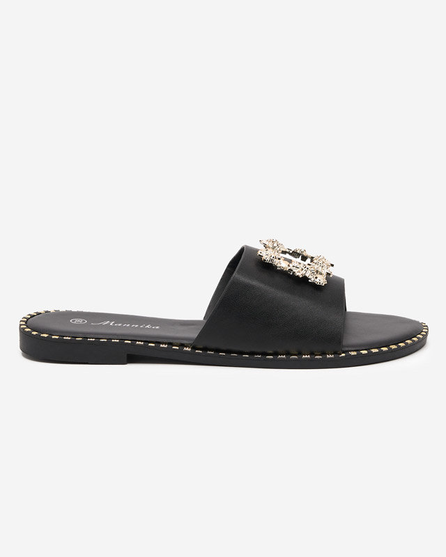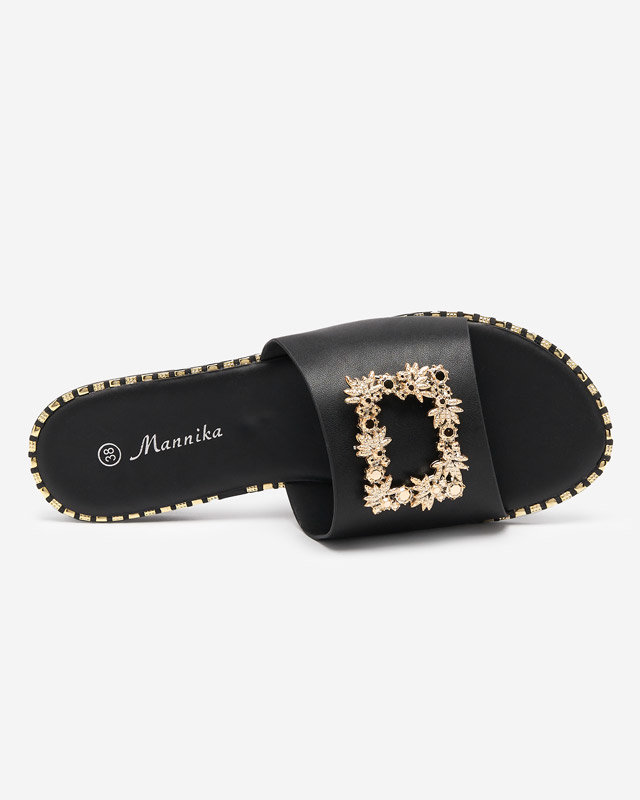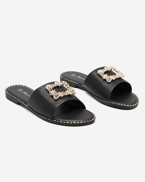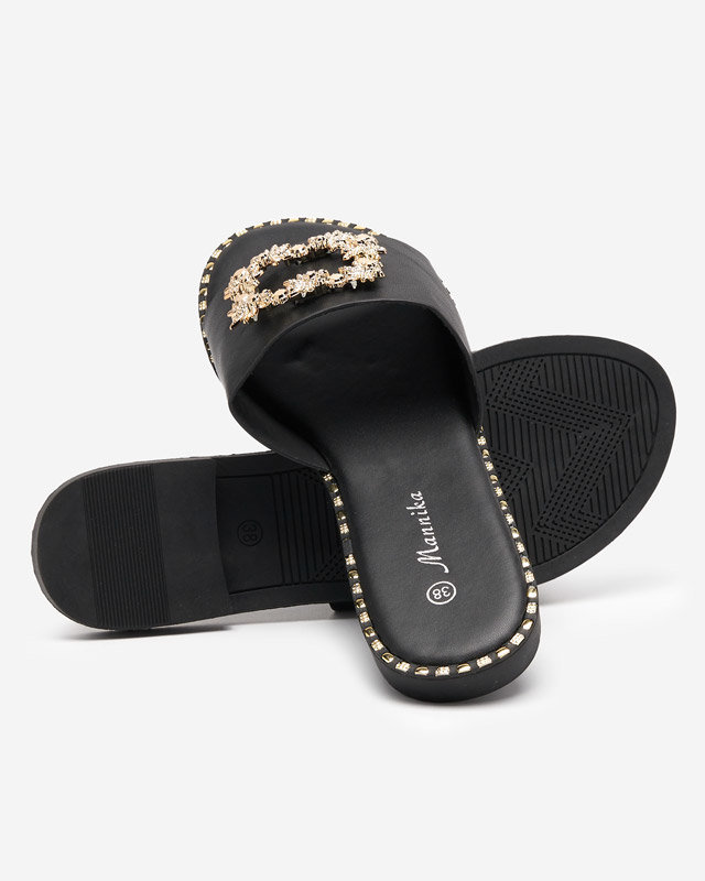 OUTLET Чорні елегантні жіночі тапочки із золотим декором Meriso - Взуття