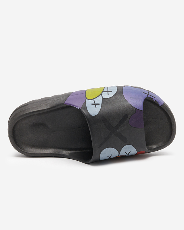 OUTLET Чорні гумові жіночі тапочки з принтом Pfizz-footwear