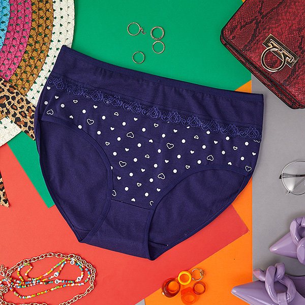 - Труси жіночі, з бавовняної тканини з сердечками. Модель прикрашена ніжним мереживом, має еластичну талію. Ідеальна білизна на кожен день! ПРИМІТКА: Точність вимірювання (+/-) 1 см.