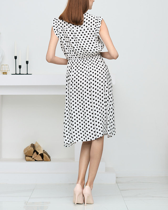 Жіноча біла сукня в горошок до коліна - Одяг