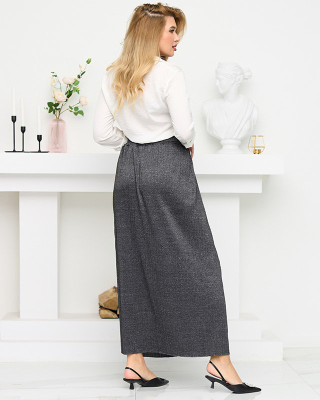 - Жіноча плісована спідниця міді без часу. Модель має широку гуму та декоративну підв'язку на талії. Прикрашений гудзиками. Спідниця унікальних сірих відтінків. Обов'язково в гардеробі кожної жінки! Точність вимірювання (+/-) 1 см.
