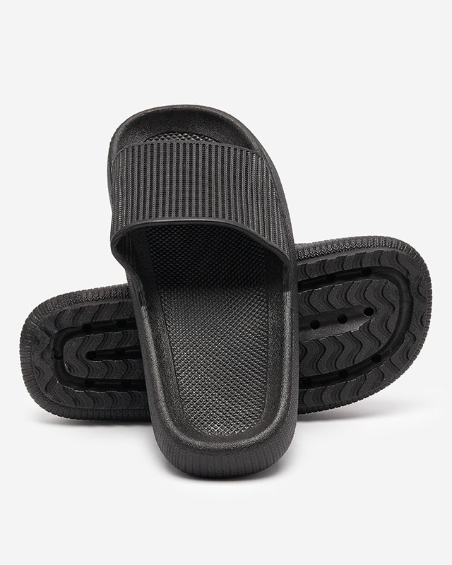Чорні гумові шльопанці з тисненням Torika