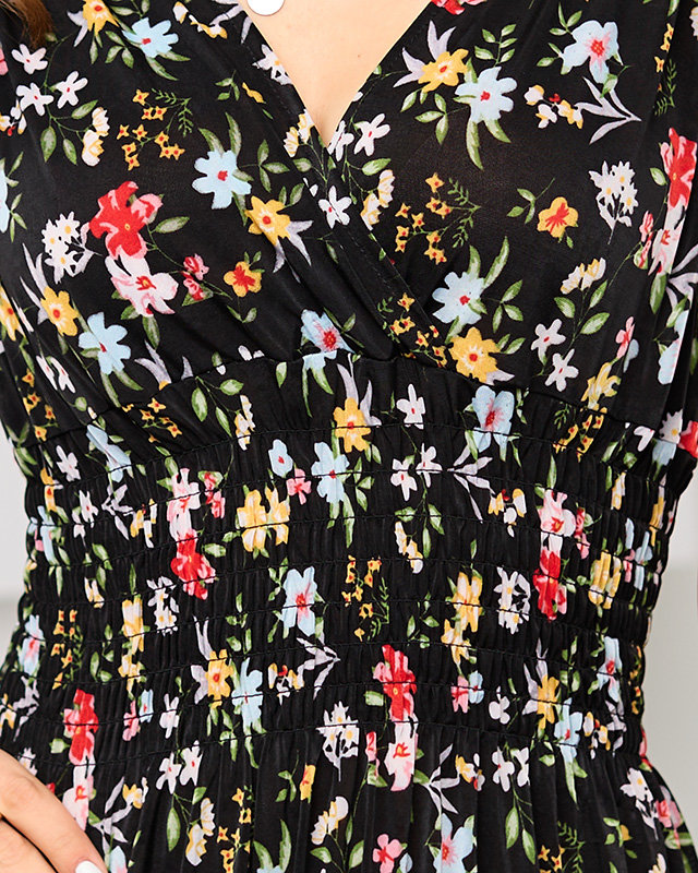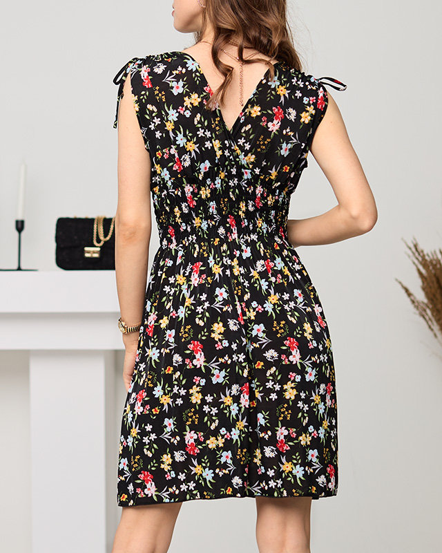 Чорне плаття на бретелях з квітковим візерунком - Одяг