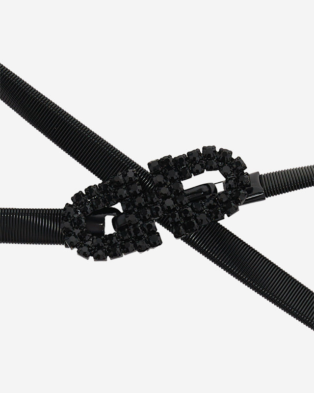 Жіночий чорний еластичний ремінь з фіанітами - аксесуари