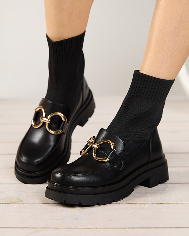 - Жіноче взуття на масивній підошві, з декоративною високою халявою. Нижня частина взуття виконана з екологічної шкіри, підошва з гуми, устілка з екошкіри. Ідеальна основа для багатьох стилізацій!