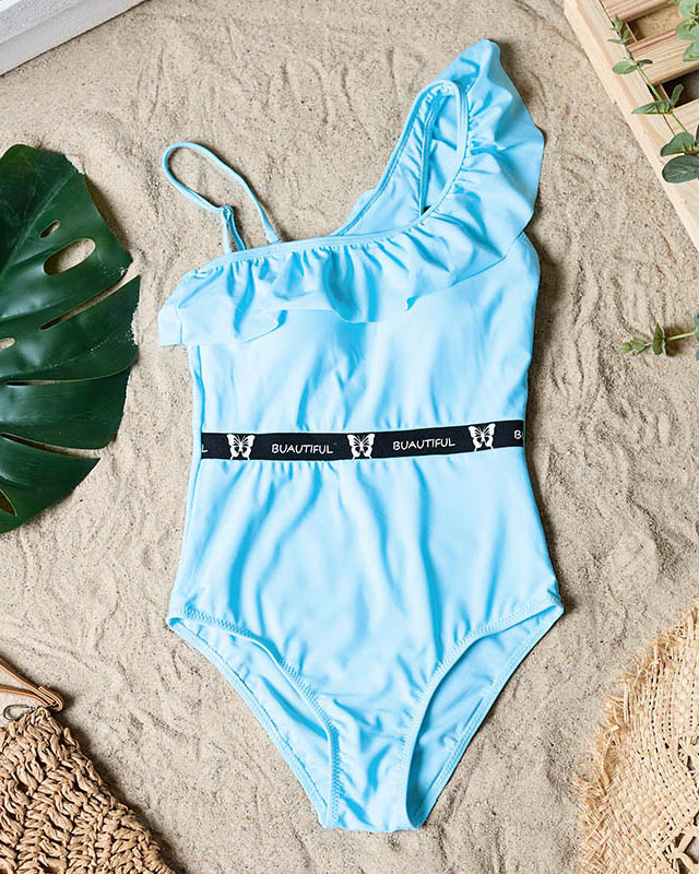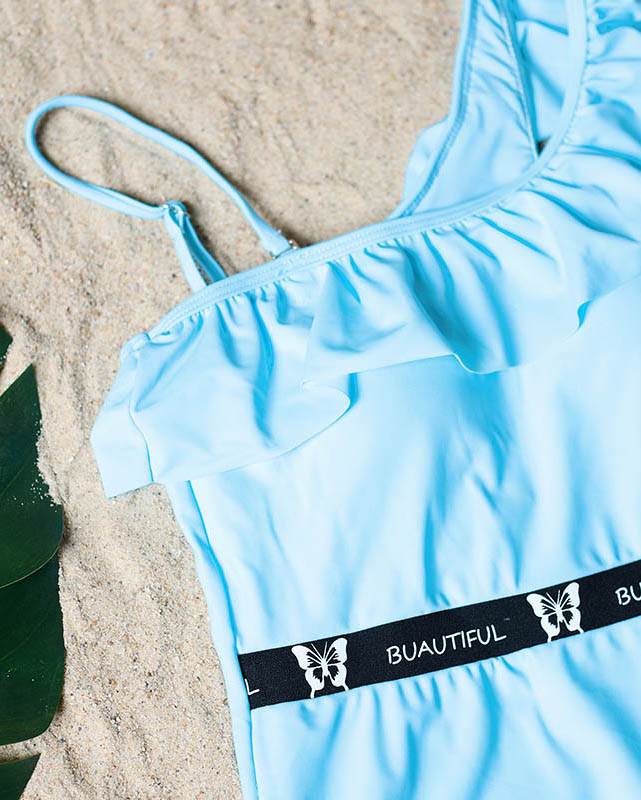 Жіночий суцільний купальник синього кольору з жабо - Нижня білизна