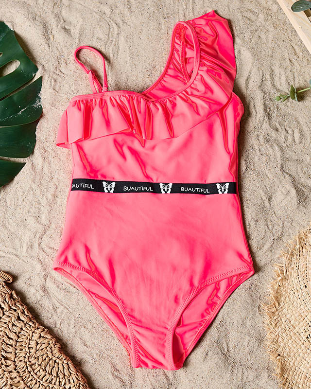 Жіночий неоновий рожевий цілісний купальник з оборкою - Нижня білизна