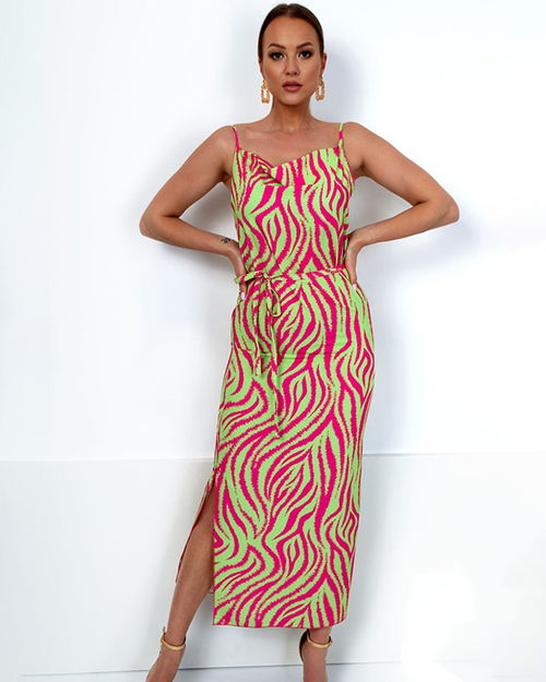Зелено-рожеве літнє плаття максі з візерунком. Одяг
