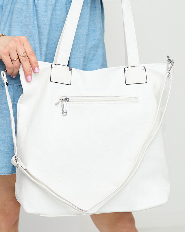 Жіноча біла сумка-шоппер з декоративними кишенями - Аксесуари