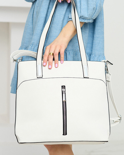 Біла жіноча сумка-шоппер з кишенями