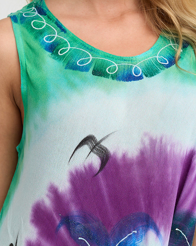 Жіноча зелена пляжна накидка в сукню типу з барвистим принтом - Одяг