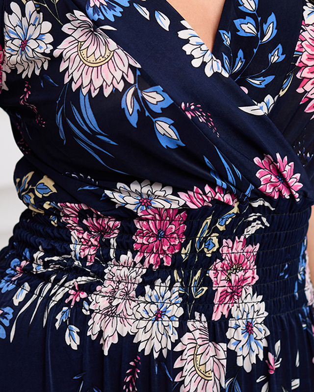 Коротке жіноче плаття з квітами темно-синього кольору - Одяг