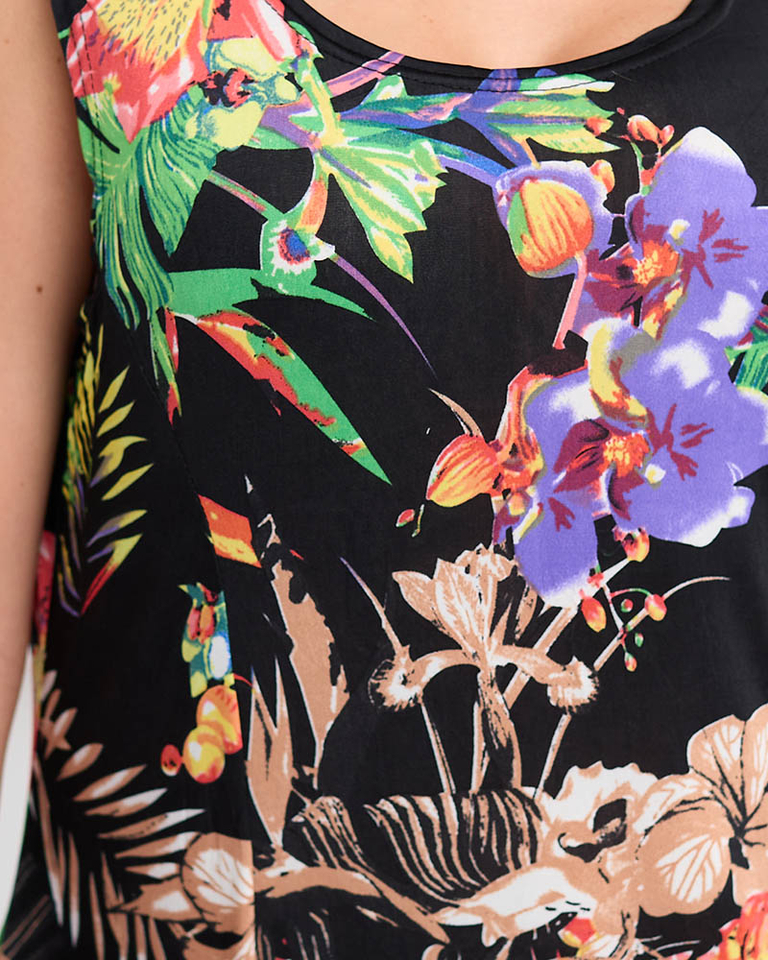 - Сукня літня жіноча, коротка, на бретельках. Модель має круглий виріз. Рослинна тема додає йому шарму! ПРИМІТКА: Точність вимірювання (+/-) 1 см.