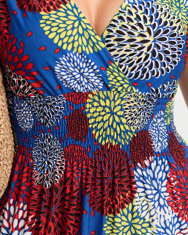 Коротка жіноча кобальтова квіткова сукня - одяг