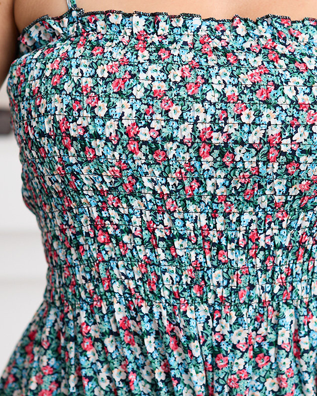 Квітчаста синьо-червона жіноча міні-сукня на бретелях - Одяг