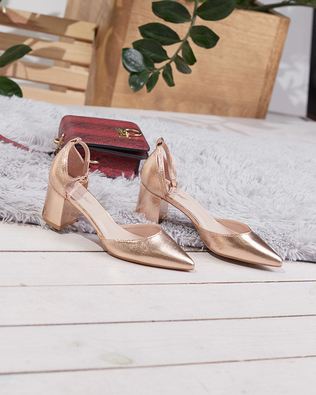 Жіночі босоніжки на низькій шпильці в кольорі рожевого золота Nerola - Взуття