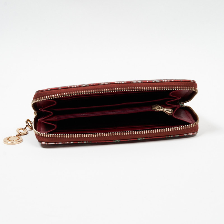 Великий бордовий жіночий гаманець з квітковим малюнком - Аксесуари