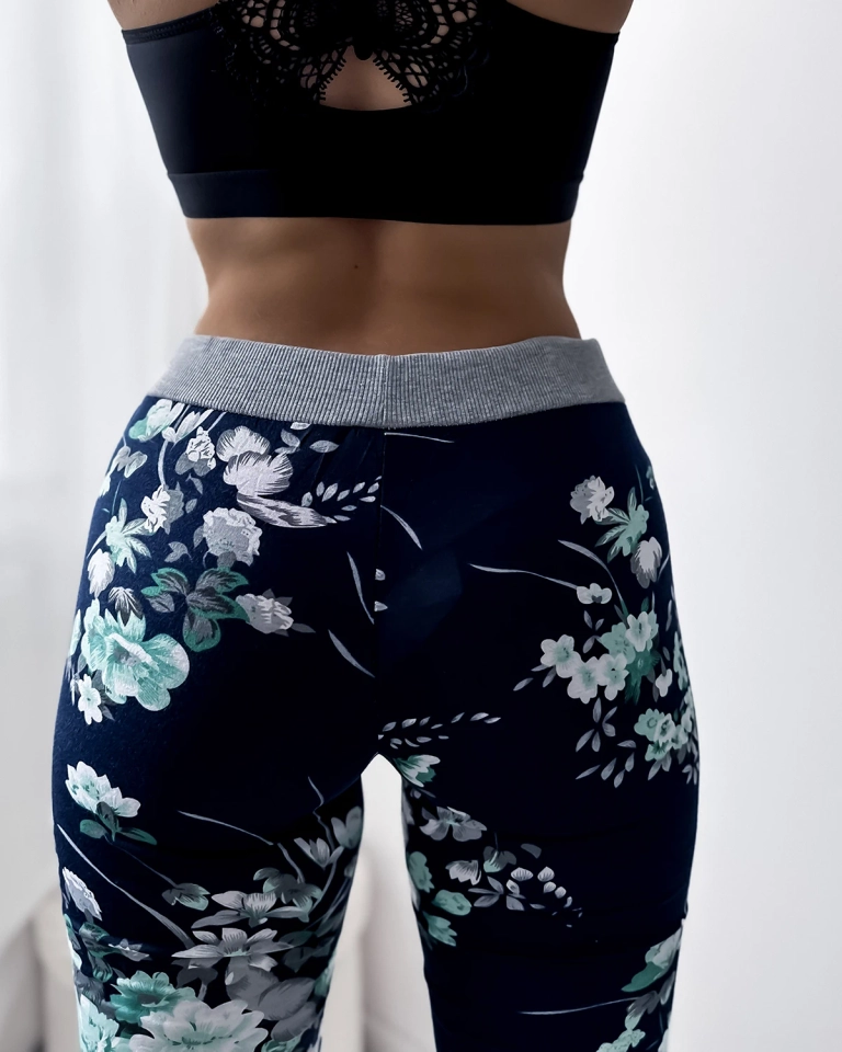 Жіночі темно-сині шорти 3/4 із зеленими квітами PLUS SIZE - Одяг