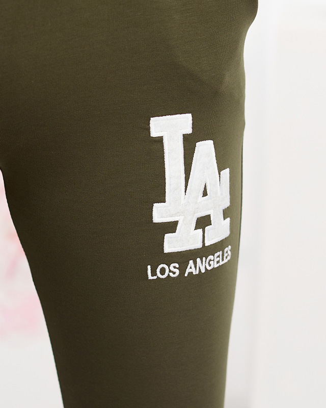 Жіночі темно-зелені спортивні штани з кольоровою нашивкою - Одяг