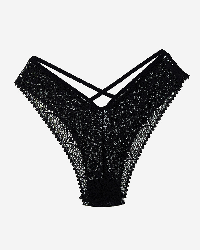 - Витончені жіночі мереживні трусики бразиліана, виготовлені з м'якого мережива. Модель прикрашена еластичними смугами на спині - ідеальна пропозиція для особливих випадків! ПРИМІТКА: Точність вимірювання (+/-) 1 см.