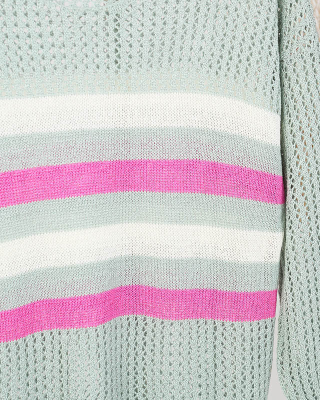 - Стильний жіночий трикотажний светр в смужку з ажурною обробкою. Модель з круглим вирізом горловини, довгими рукавами та ребристими манжетами по низу. Ідеально підійде для створення модних образів! ПРИМІТКА: Похибка вимірювання (+/-) 1 см.